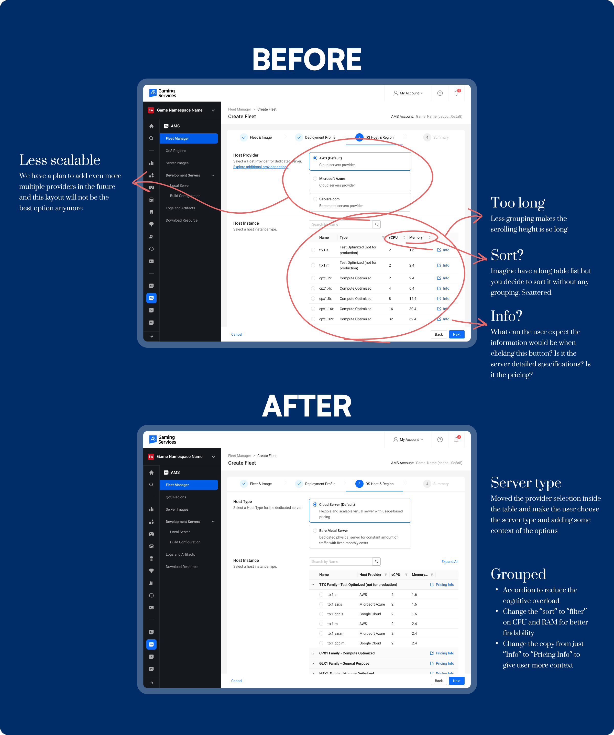 Provider Preference: Game admins often have strong preferences for specific host providers. As the company planned to add more providers, it was important to design a scalable solution.