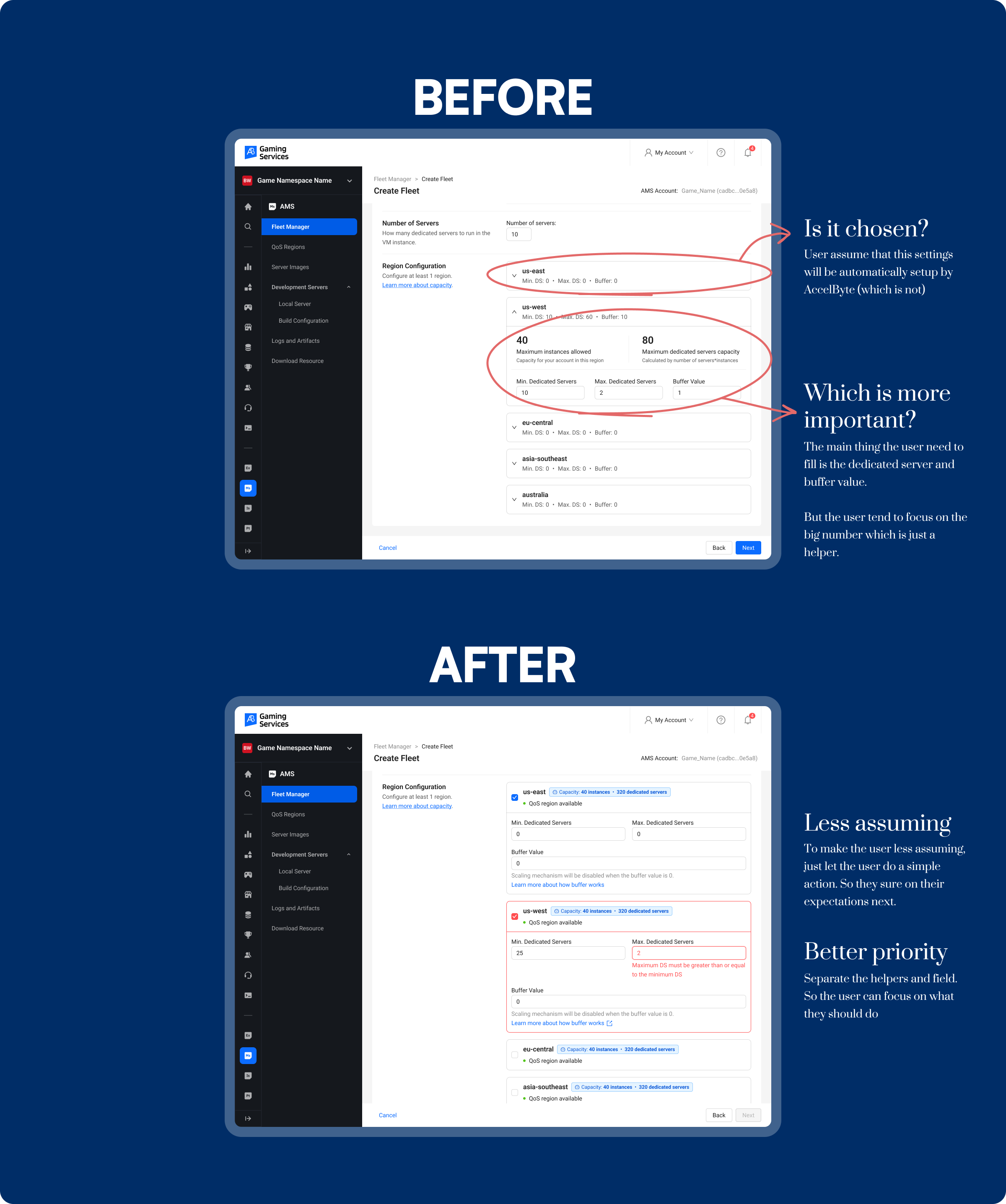 Better clarity when choosing and configuring fleet regions AccelByte Multiplayer Server